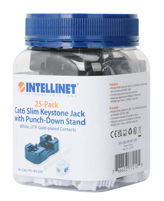 Cat6 Slim Keystone Jack with Punch-Down Stand, White, 25-Pack