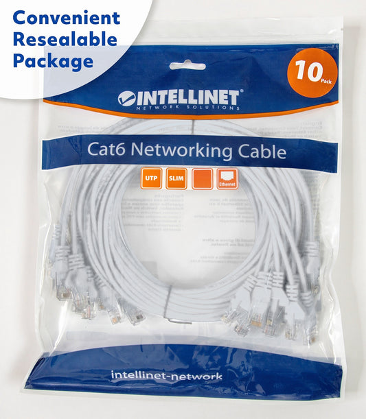 Cat6 U/UTP Slim Network Patch Cable, 10 ft., White, 10-Pack