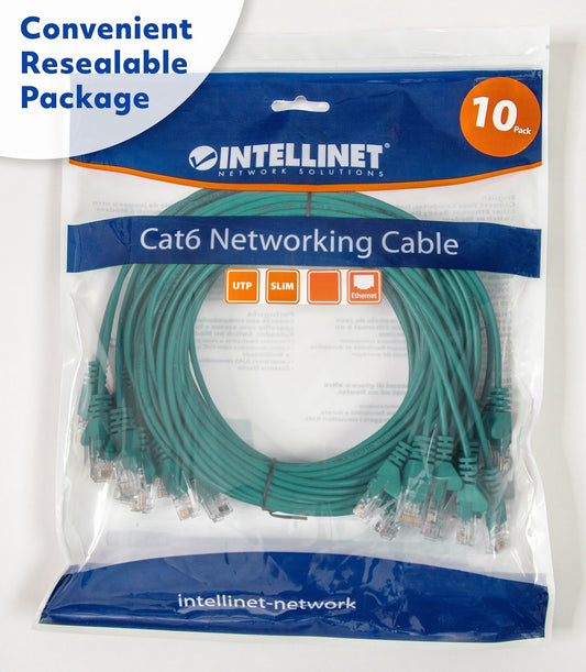 Cat6 U/UTP Slim Network Patch Cable, 10 ft., Green, 10-Pack
