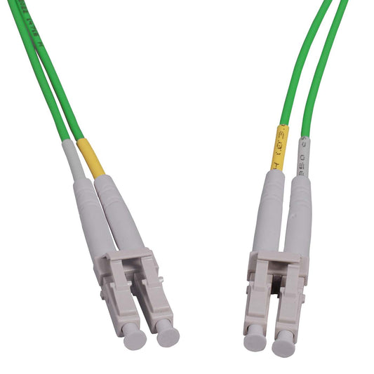 3 m LC to LC UPC Fiber Optic Patch Cable, 2.0 mm, Duplex, OFNR, OM5 Multimode, Lime Green