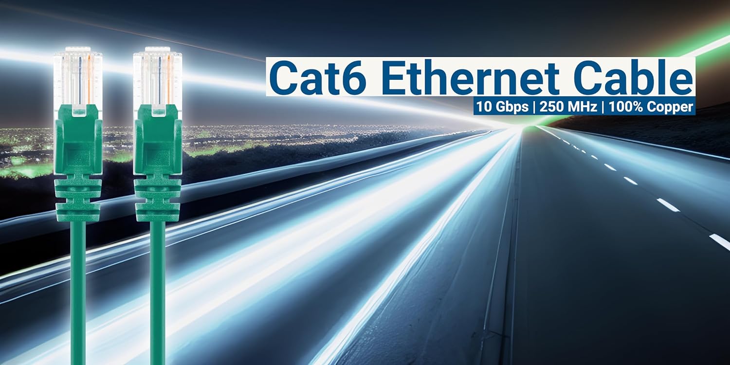 Cat6 U/UTP Slim Network Patch Cable, 5 ft., Green, 10-Pack